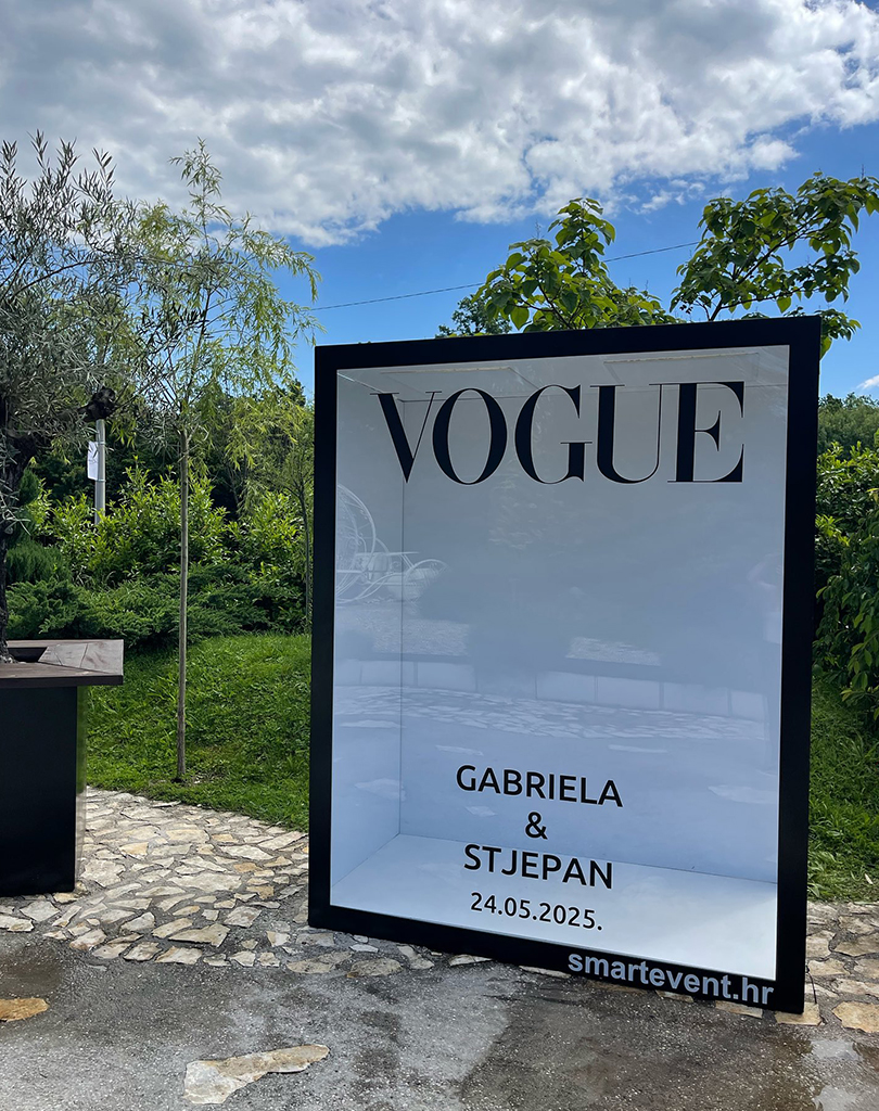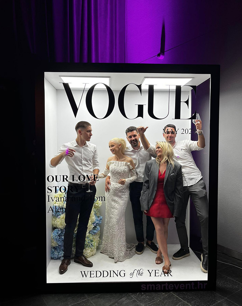 Photo box VOGUE donosi dozu glamura i bezvremenske elegancije na svaki event. Inspiriran naslovnicama modnih časopisa, u potpunosti se personalizira prema prigodi i vašim željama. Savršen je za stvaranje upečatljivih fotografija i nezaboravnih uspomena te je idealan dodatak za rođendane, vjenčanja, modne i poslovne evente.